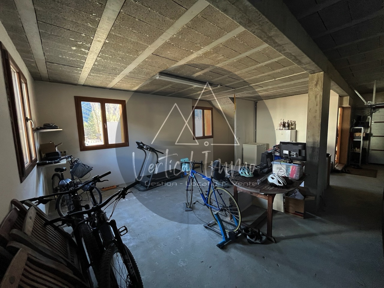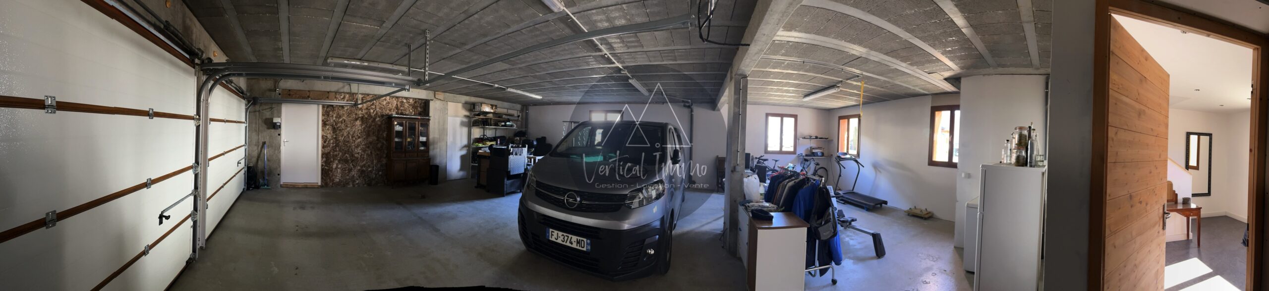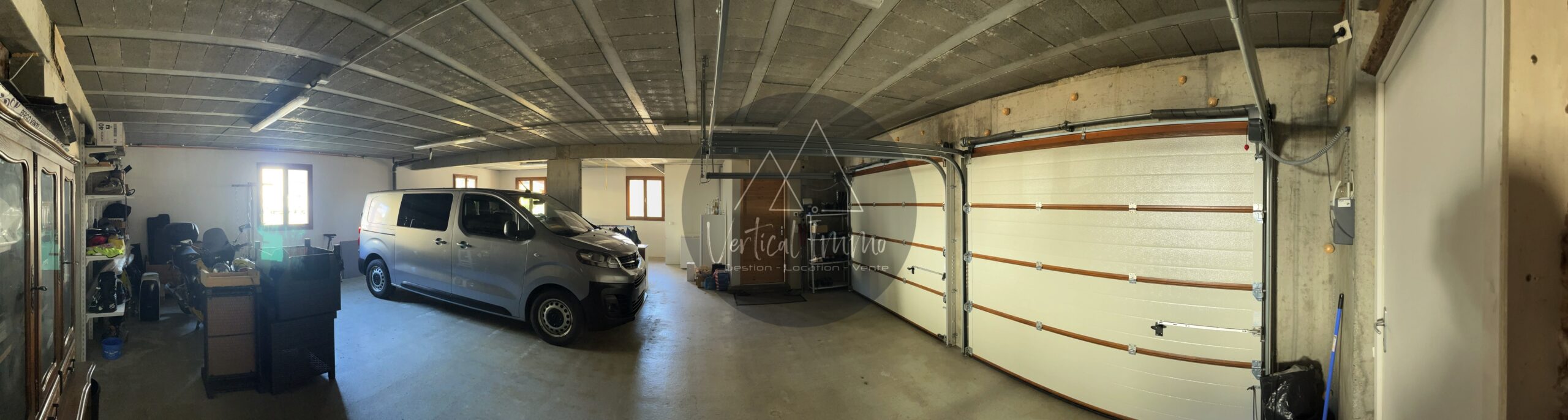– Un Garage de 97 m2 au Rez de chaussée avec deux portes de garage relevables